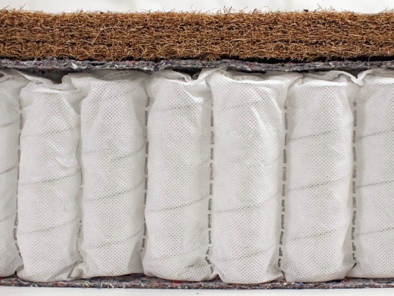 Кокосовая койра - экологически чистый натуральный наполнитель, состоящий из кокосовых волокон, обладает хорошим воздухо- и влагообменом, гипоаллергенностью и долговечностью.