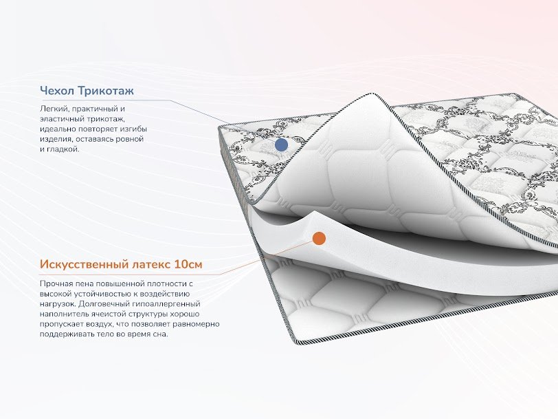 Искусственный латекс - высокотехнологичный современный материал, сочетающий в себе оптимальные характеристики по соотношению цены и качества. По внешнему виду он скорее напоминает пенополиуретан но имеет более плотную структуру.
