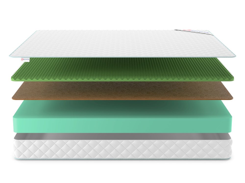 Кокосовая койра - экологически чистый натуральный наполнитель, состоящий из кокосовых волокон, обладает хорошим воздухо- и влагообменом, гипоаллергенностью и долговечностью.