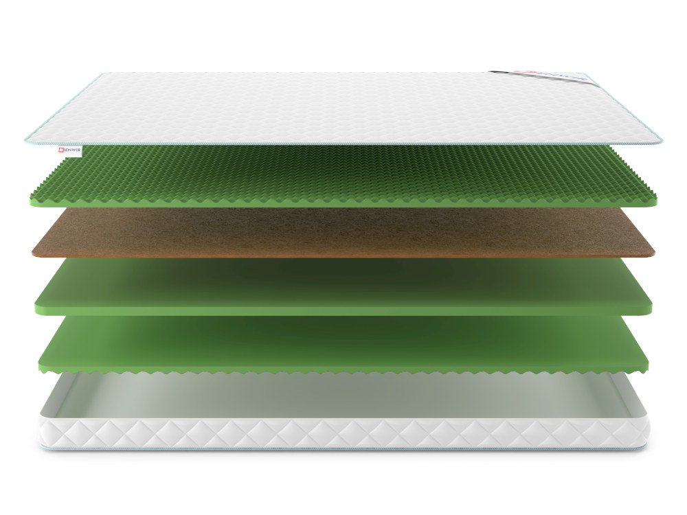 Кокосовая койра - экологически чистый натуральный наполнитель, состоящий из кокосовых волокон, обладает хорошим воздухо- и влагообменом, гипоаллергенностью и долговечностью.