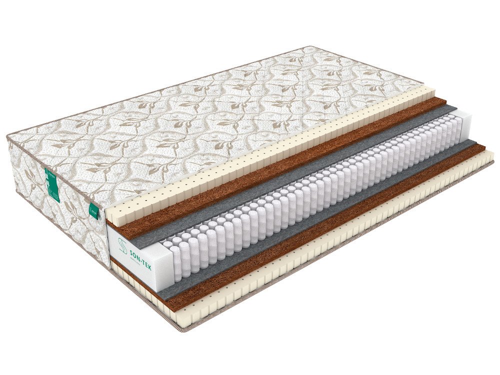 Кокосовая койра - экологически чистый натуральный наполнитель, состоящий из кокосовых волокон, обладает хорошим воздухо- и влагообменом, гипоаллергенностью и долговечностью.
