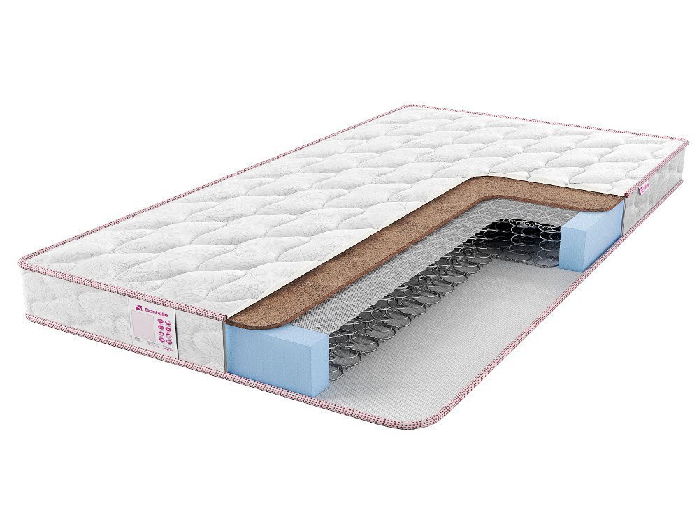 Невысокий односторонний матрас Libre Base store расположился на основе зависимого блока пружин Bonnel. Пружинные завитки скреплены между собой образуя прочное полотно. В матрасе одна рабочая поверхность из жесткой латексированной койры кокоса. Коксовый наполнитель гигиеничен и не вызывает раздражений на коже. Кокос выравнивает поверхность и добавляет ортопедических свойств. Благодаря жесткому кокосовому наполнению матрас подойдет как детям, так и взрослым ведущим активный образ жизни. Матрас упруго подстраивается под вес спящего, не проминаясь не образуя заломов. ЧехолЧехол пошит из красивого и прочного синтетического жаккарда простеганного на гипоаллергенном волокне. Ткань чехла устойчива к деформации и износу, надолго сохраняет цвет и свойства. ПреимуществаПружинная модель на классическом блоке Bonnel; натуральное наполнение из койры кокоса; одностороннее использование; соотношение цены и качества. Интернет-магазин TOP-MATRAS.RU официально представляет марку Sontelle на территории Москвы, Московской области и всей России. Мы соблюдаем ценовую политику брэнда Sontelle, но готовы сделать индивидуальное ценовое предложения для наших клиентов. Кроме того, только у нас вы сможете выгодно и быстро купить матрас Sontelle Libre Base store в любом нестандартном размере, с доставкой по городу Москва. Матрас Sontelle Libre Base store размером 60 х 110 по цене — 6205 р. Успейте купить со скидкой 45%. Срок акции - с 15-10-2025 по 29-10-2025 Срок распродажи и количество товара ограничены. Действующая цена со скидкой 6205 р. Ваша экономия составит -6205 р. Для заказа матраса в Москве или Московской области звоните: +7 (800) 777-05-32