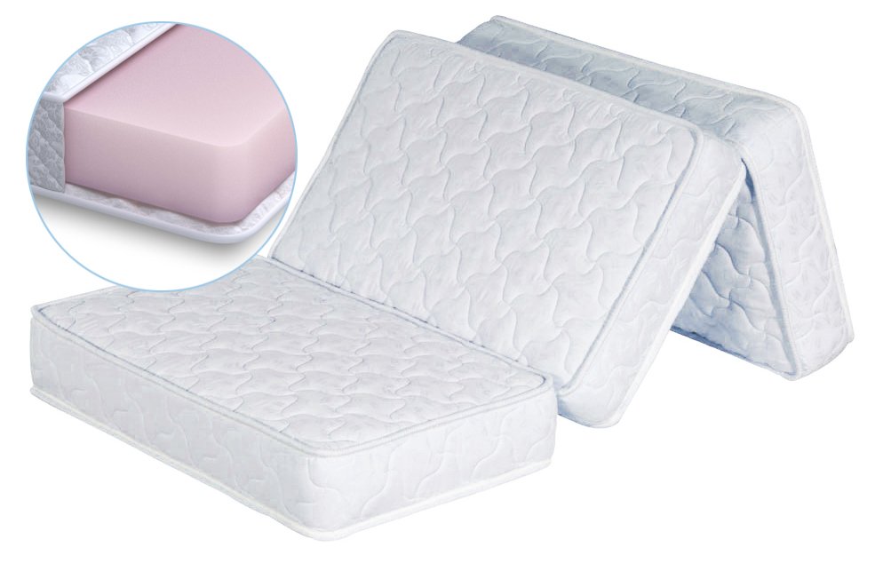 Матрас-трансформер из искусственного латекса средней жесткости. Упругий, недорогой матрас из поролона повышенной плотности подойдет для временного использования, для дивана, раскладушки или размещения гостей в квартире. Искусственный латекс - дышащий, гипоалергенный, средний по жесткости наполнитель. Смягчит спальное место, добавит комфорта. Матрас состоит из трех частей, он компактно складывается и убирается при необходимости. По углам имеет липучки для надежной фиксации. ЧехолЧехол матраса выполнен из жаккарда, простеганного на гипоалергенном синтепоне. Стежка дает объем и дополнительный комфорт. Ткань приятная на ощупь и внешне.