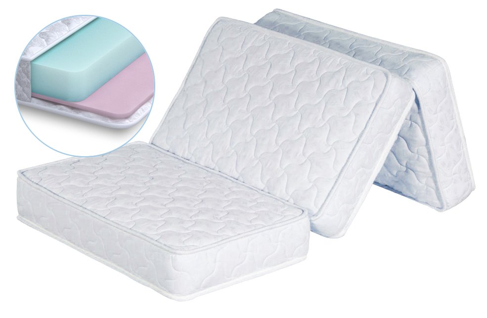 Матрас-трансформер с двумя сторонами жесткости из пенополиуретана и искусственного латекса. Невысокий, двусторонний, недорогой матрас из поролона (пенополиуретан) и искусственного латекса подойдет для временного использования, для дивана, раскладушки или размещения гостей в квартире. Пенополиуретан - дышащий, гипоалергенный, мягкий наполнитель. Смягчит спальное место, добавит комфорта. Другая сторона матраса средней жесткости из искусственного латекса. Искусственный латекс - это пенополиуретан повышенной плотности. Матрас состоит из трех частей, он компактно складывается и убирается при необходимости. По углам имеет липучки для надежной фиксации. ЧехолЧехол матраса выполнен из трикотажа, простеганного на гипоалергенном синтепоне. Ткань приятная на ощупь и внешне. Стежка дает дополнительный объем и комфорт.